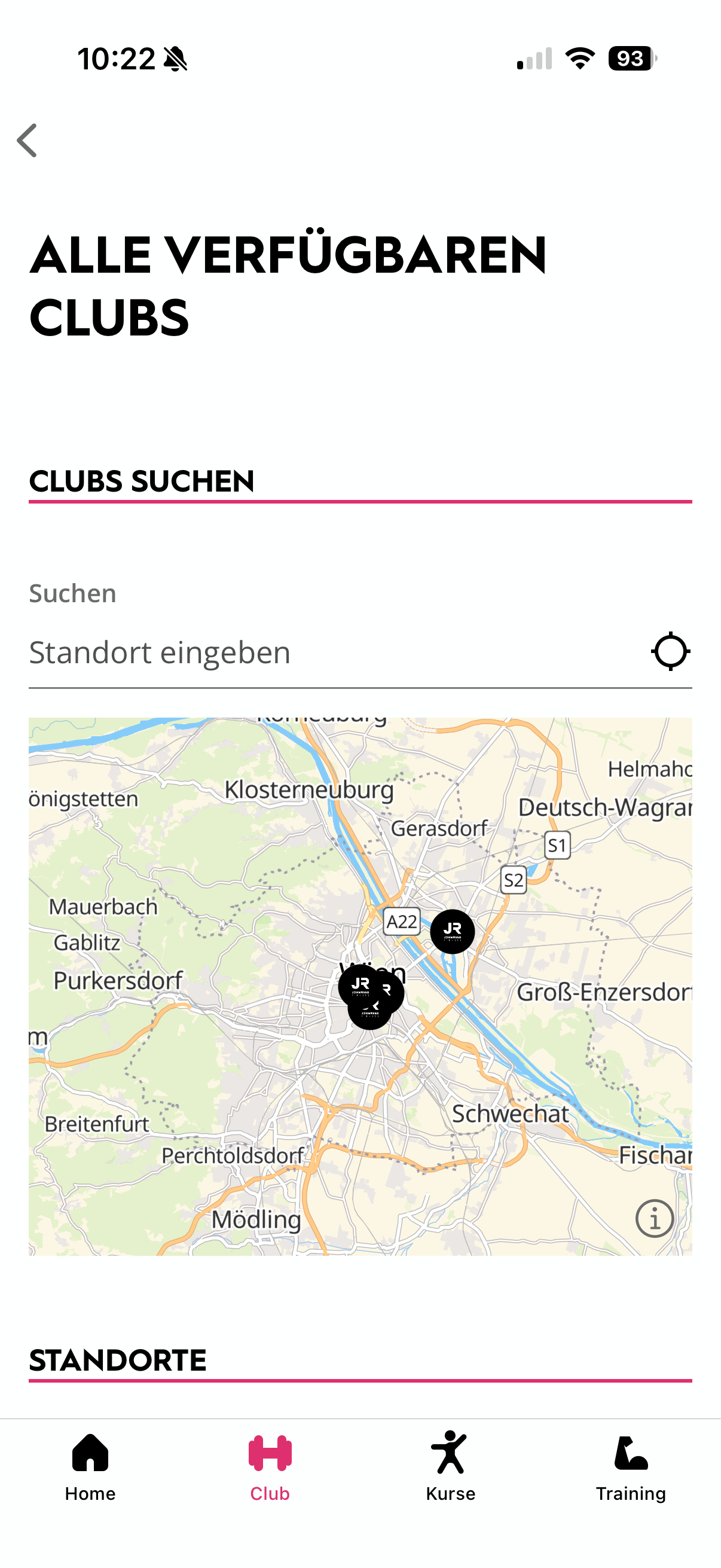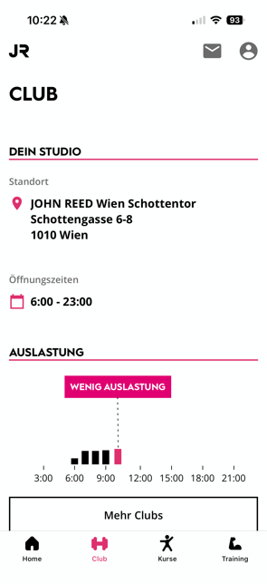 In der App kannst du unter dem Menüpunkt ‚Club‘ auswählen, welches Studio dir angezeigt werden soll.